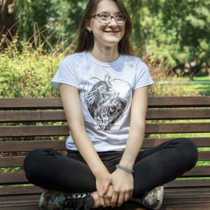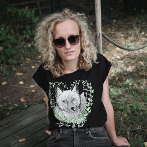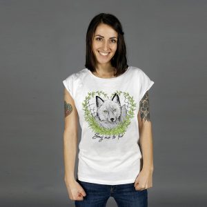T-shirt ma dopasowany krój slim-fit i dostępny jest w kolorze białym. W naszym sklepie znajdziesz też koszulkę ze zwierzętami takimi jak świnie, lisy czy kury. Dochód ze sprzedaży wszystkich ciuchów zasila konto Stowarzyszenia Otwarte Klatki.