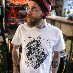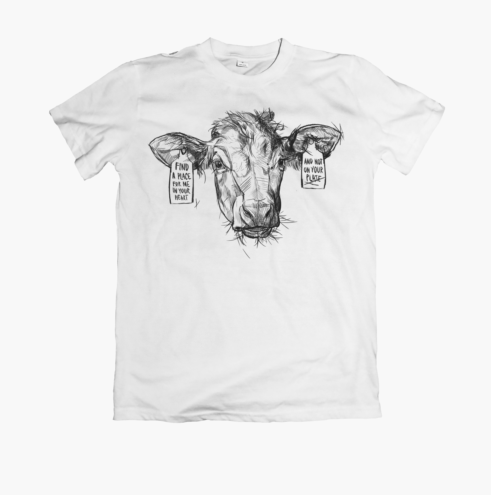 Oto koszulki z twarzami zwierząt idealne dla wegan i wegetarian, ale też wszystkich osób zwyczajnie kochających zwierzaki. Biały t-shirt męski Heart Cow zdobi podobizna krowy o dumnym spojrzeniu. Na kolczykach w jej uszach można odczytać napis “Find a place for me in your heart and not on your plate”. Nie ma wątpliwości, że jest to jedna z krówek uratowanych przez Otwarte Klatki z hodowli przemysłowej.