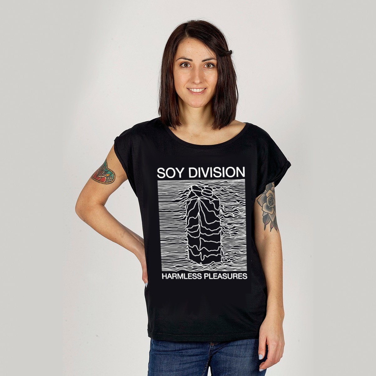 Wegańskie koszulki tworzone na wzór merchów popularnych zespołów to nasza specjalność! Nie musisz słuchać Joy Division, aby mieć t-shirt z okładką ich debiutanckiej płyty, u nas o tytule “Harmless Pleasures” i napisem… Soy Division. Tak, nasze wegańskie koszulki są przeznaczone dla fanek soi. Dzięki oversizowemu fasonowi będziesz czuć się w bluzce komfortowo, nawet po bardzo obfitej wege kolacji. Wzór znajdziesz w sklepie również w wersji męskiej/unisex, aby wspólnie z osobą partnerską wyrazić miłość do sojowych produktów na co dzień.