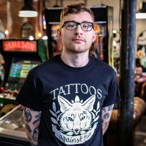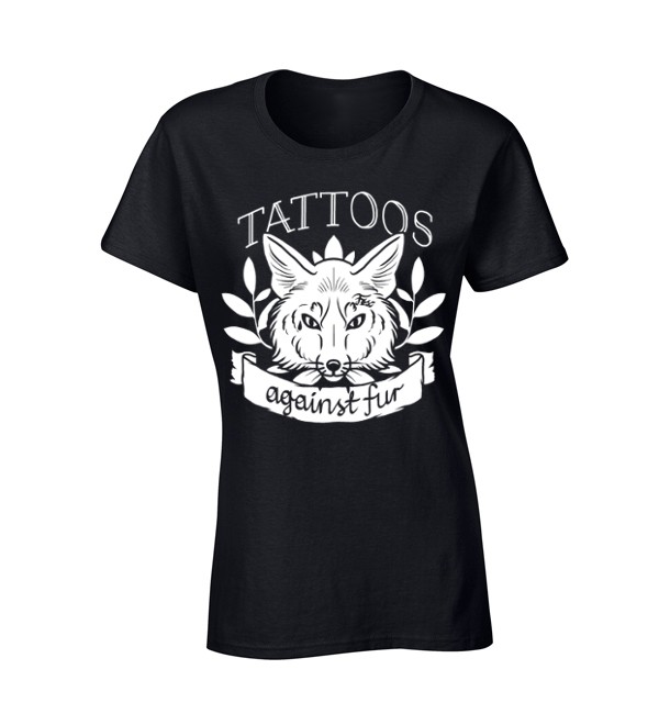 Koszulka z nadrukiem zwierząt dla fanek tatuażu i nie tylko. Tutaj w wersji anglojęzycznej z napisem “Tattoos Against Fur” i dużym wizerunkiem lisa na piersi. Dzięki tej koszulce z nadrukiem zwierząt leśnych pokażesz światu, że jesteś przeciwko naturalnym futrom i związanemu z nimi przemysłowi. Dochód ze sprzedaży wspiera działania Otwartych Klatek, a wśród nich ratowanie lisów i norek cierpiących w hodowlach. T-shirt możesz nosić do jeansów, dresów czy szortów w połączeniu z kurtką i sneakersami. Nie współgra jedynie z naturalnym futrem.