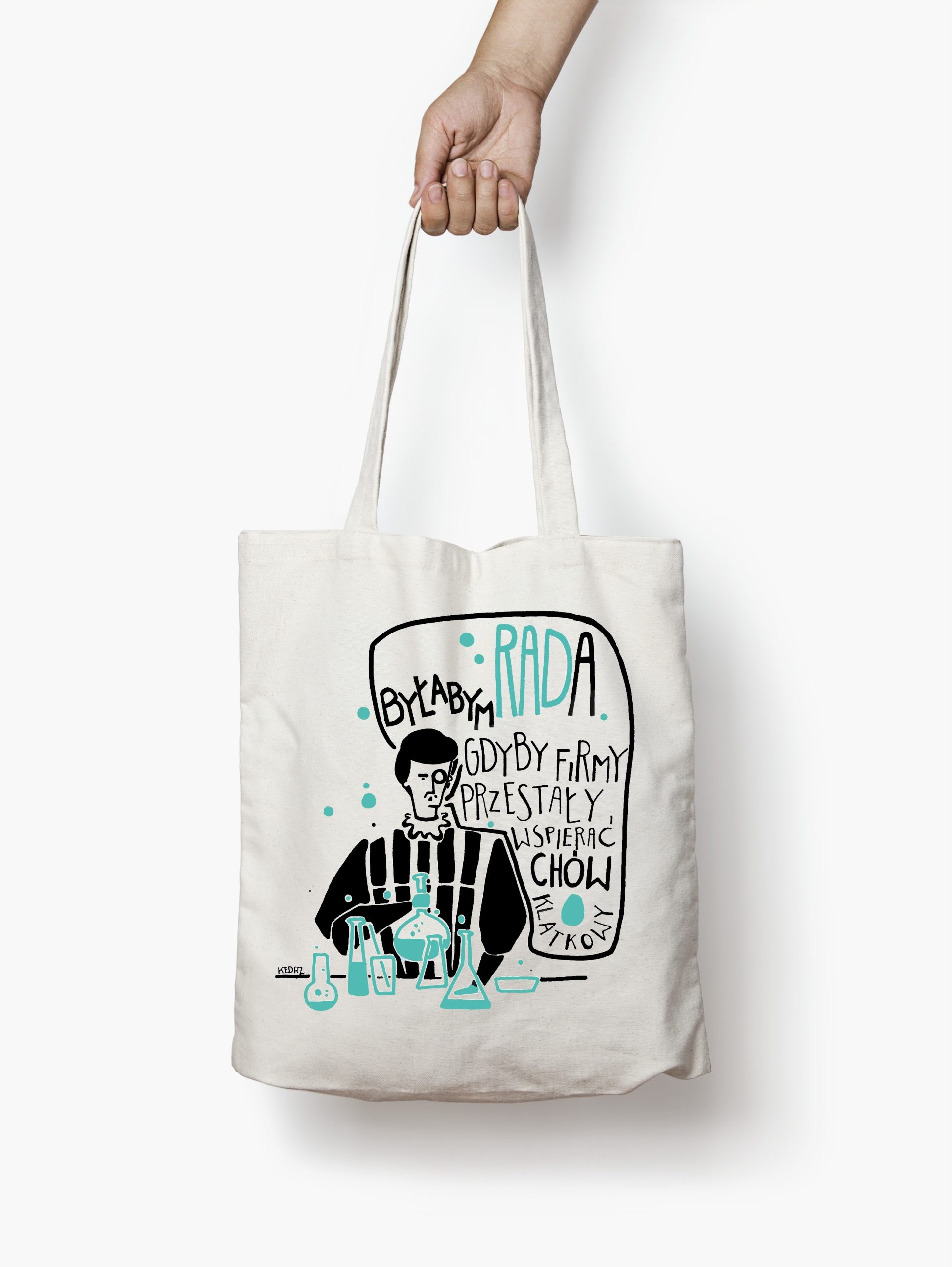 Czy Maria Curie-Skłodowska jadła mięso? Tego nie wiemy, ale torby bawełniane z nadrukiem przyjmą wszystko. Wierzymy, że podobnie jak my, przeciwstawiałaby się trzymaniu kur w klatkach na hodowlach przemysłowych. Dlatego jasne torby bawełniane z nadrukiem zdobi rysunkowa podobizna fizyczki z hasłem “Byłabym rada, gdyby firmy przestały wspierać chów klatkowy”. Też byłbyś lub byłabyś rada z takiego obrotu sprawy? Wspieraj Otwarte Klatki kupując w naszym sklepie!