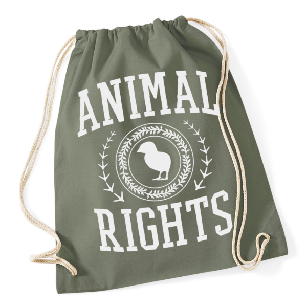 Plecak worek z nadrukiem logo Otwarte Klatki i napisem “Animal Rights”. Wzór inspirowany symbolem uniwersyteckim idealny dla osób wyedukowanych w kwestii najważniejszej – miłości do zwierząt. Dostępny w kilku kolorach, wykonany w 100% z bawełny. Dzięki podwójnym, trwałym ramiączkom jest wygodny w noszeniu i solidny. Nasz plecak worek z nadrukiem ma jeszcze jedną zaletę – jego zakup wspiera działania Otwartych Klatek, czyli codzienną walkę o prawa zwierząt.